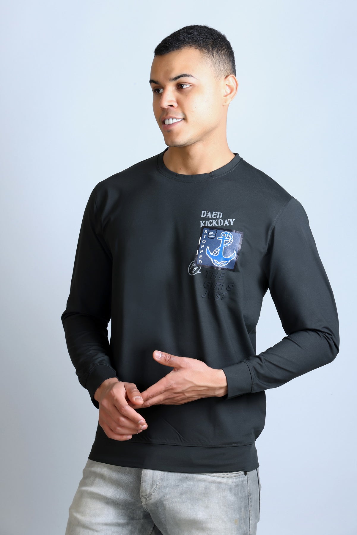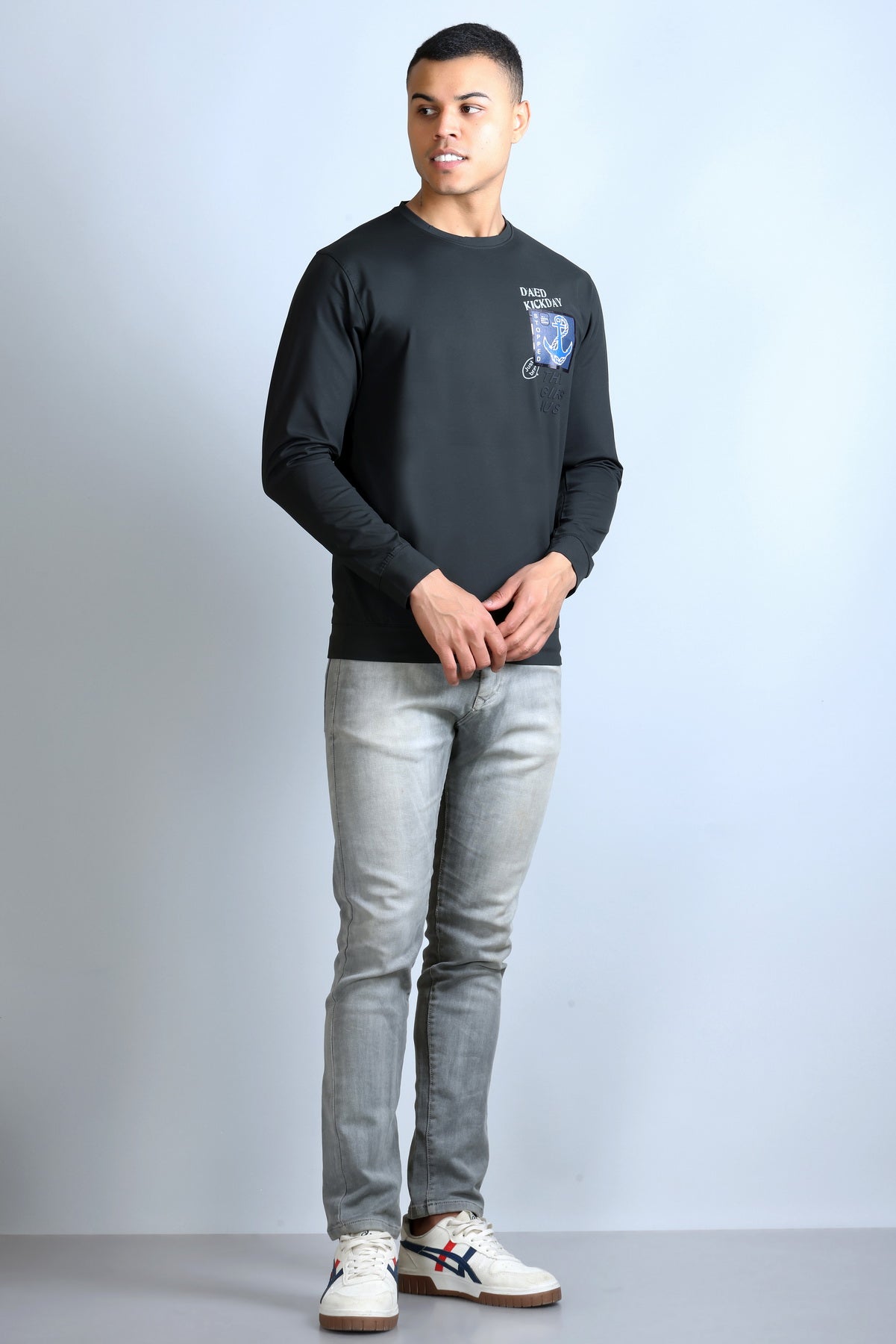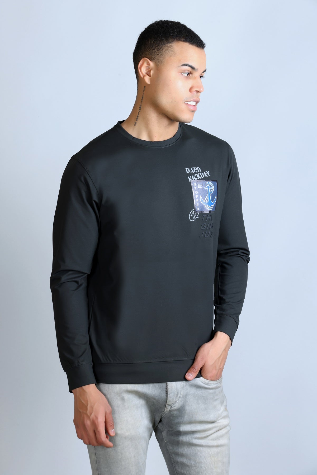 Elevate your everyday style with our Men's Round Neck Printed Sweatshirt. This timeless and versatile wardrobe essential combines a classic round neck design with a solid color, making it the perfect choice for a clean and stylish look in any season.