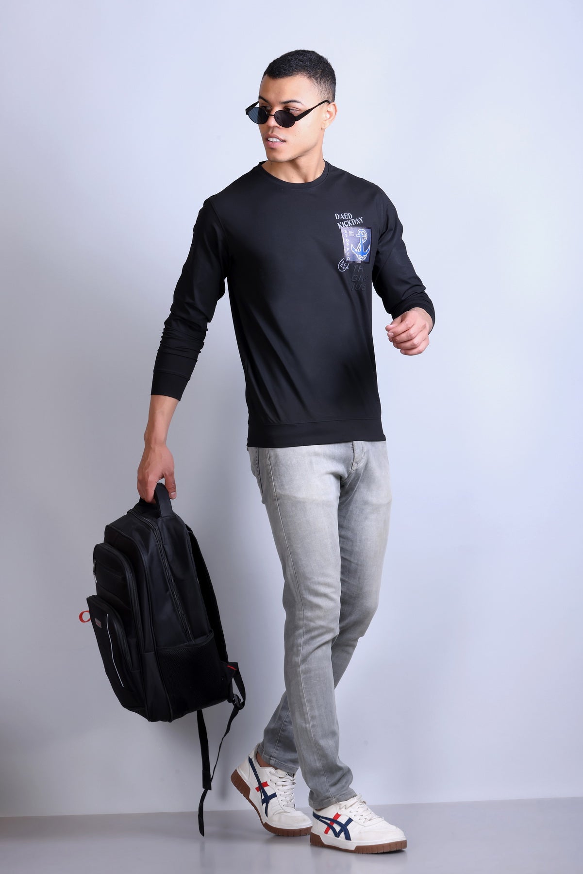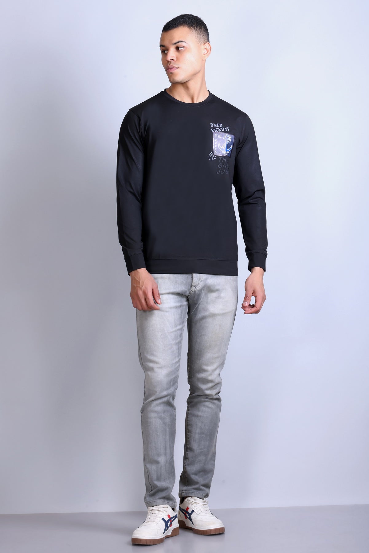 Elevate your everyday style with our Men's Round Neck Printed Sweatshirt. This timeless and versatile wardrobe essential combines a classic round neck design with a solid color, making it the perfect choice for a clean and stylish look in any season.