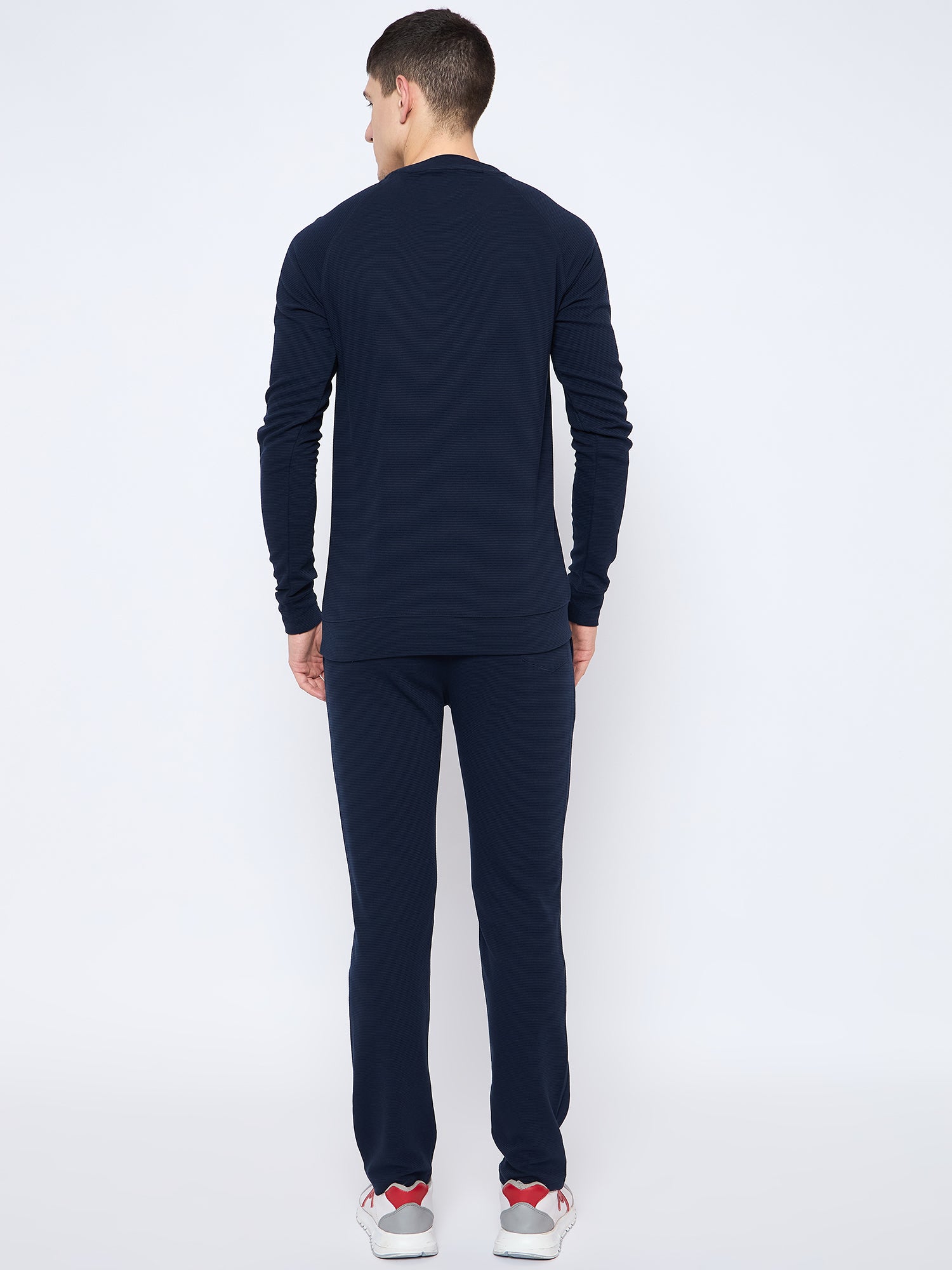 Men's Navy Self Design Round Neck Track Suit