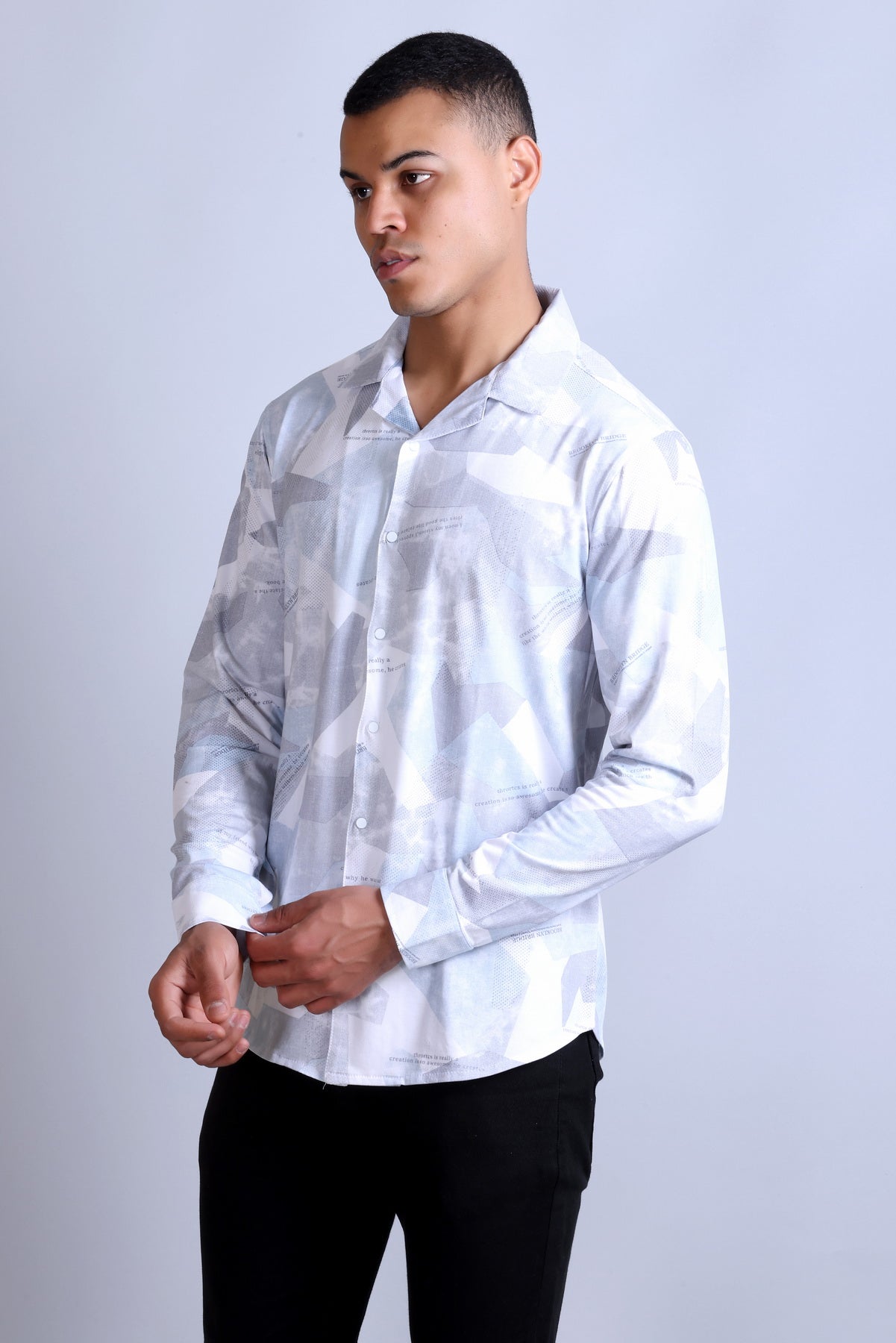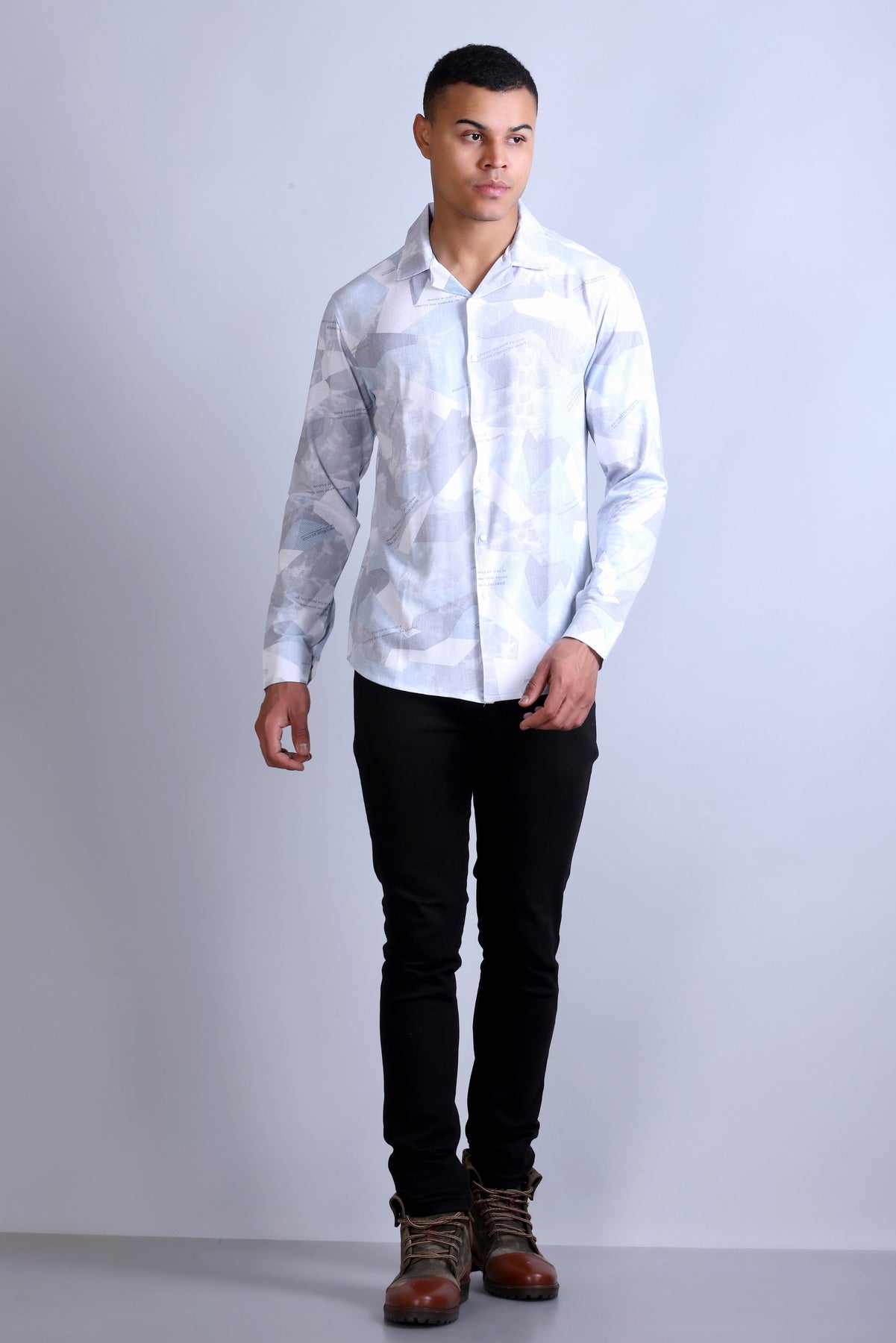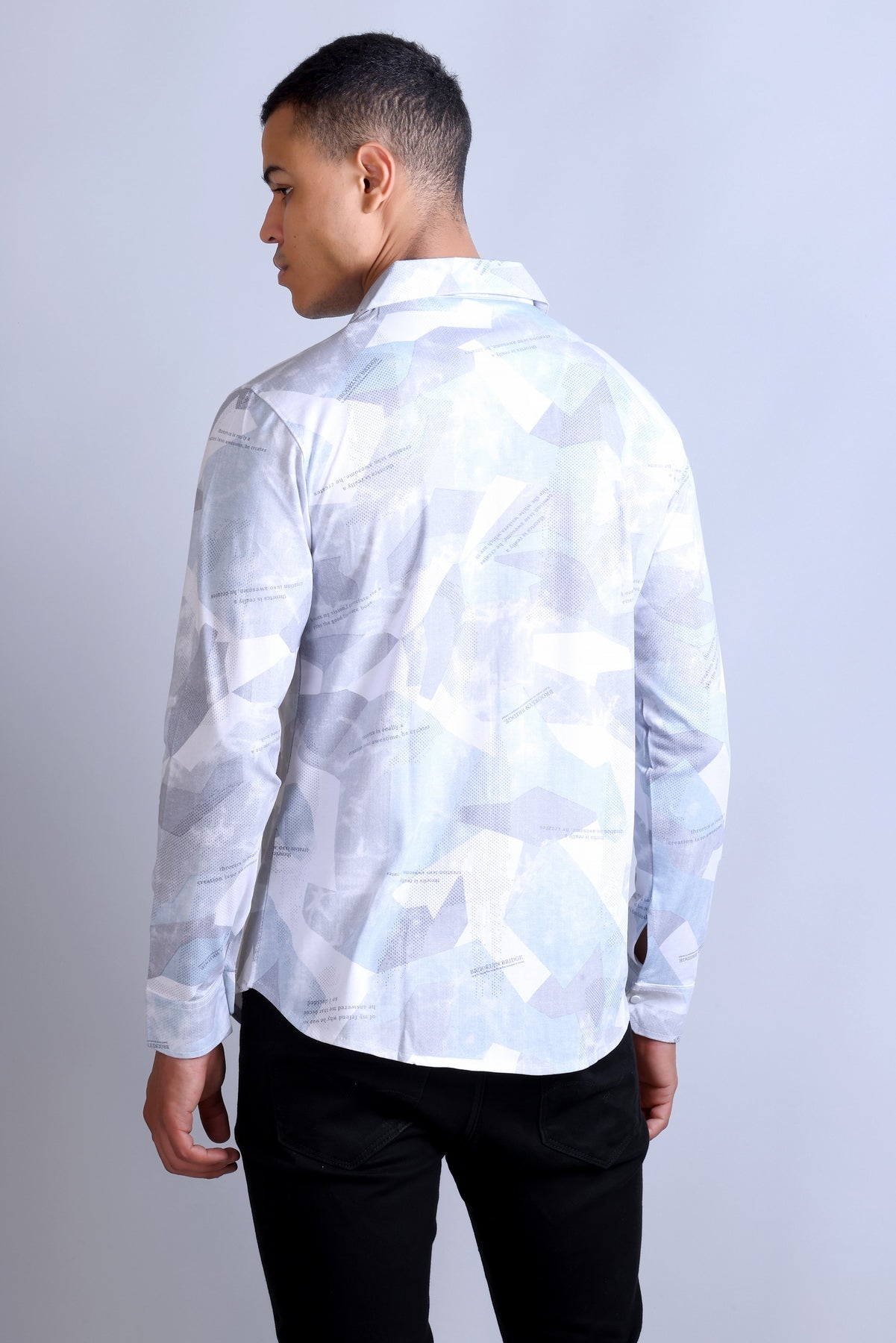 Elevate your everyday style with our Men's Sky White Printed Shirt This timeless and versatile wardrobe essential combines a classic round neck design with a solid color, making it the perfect choice for a clean and stylish look in any season.