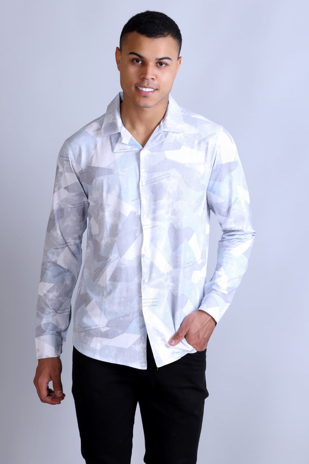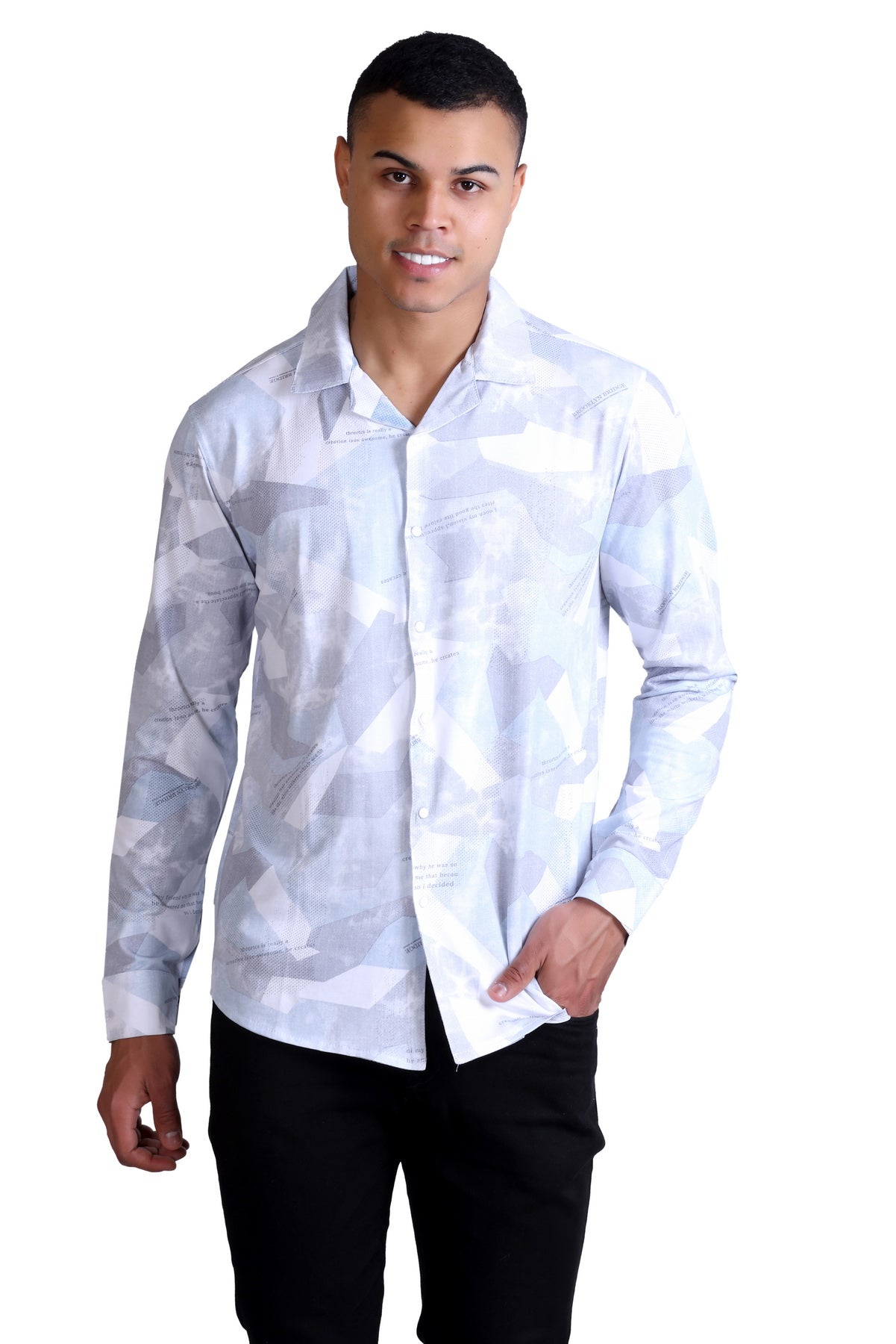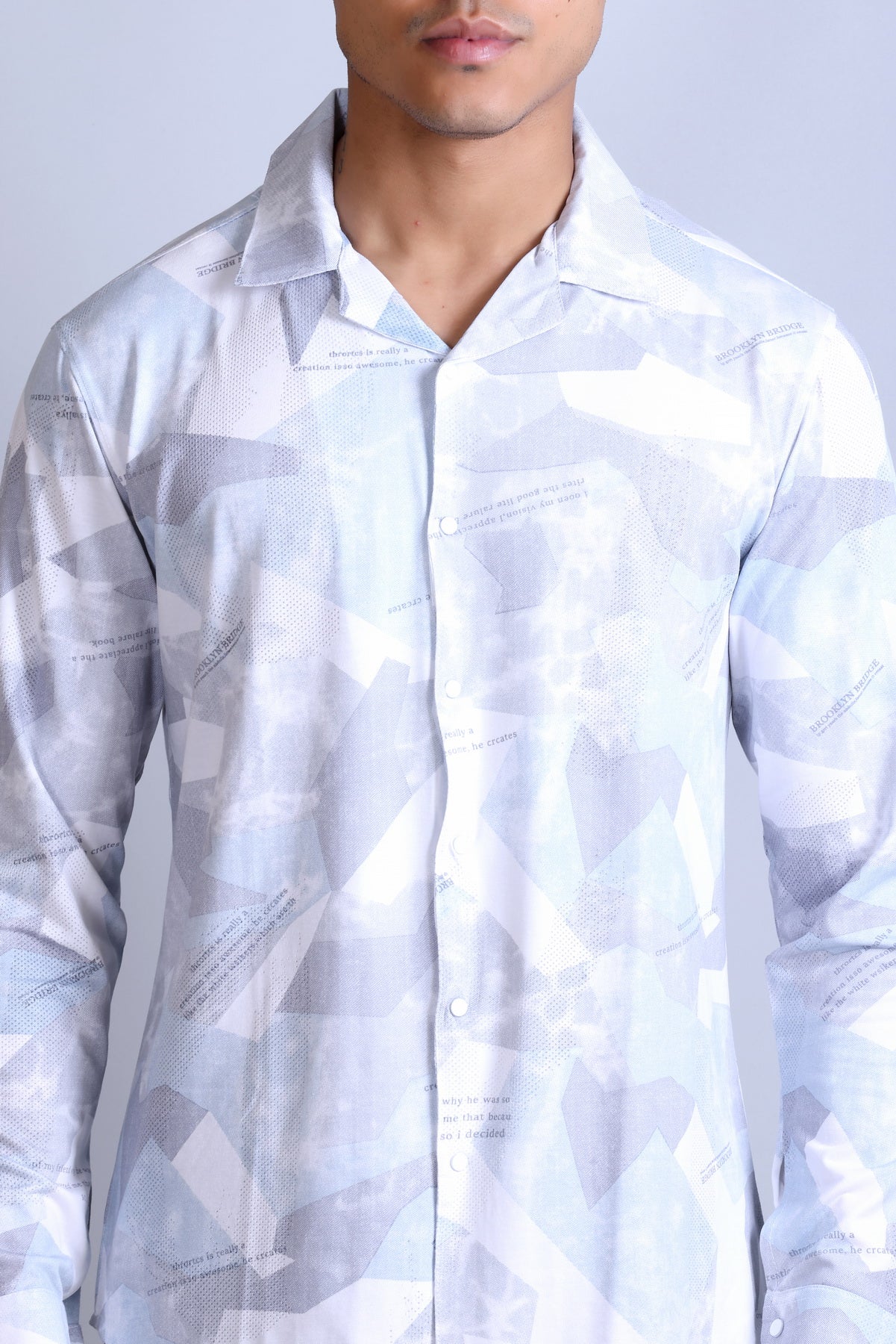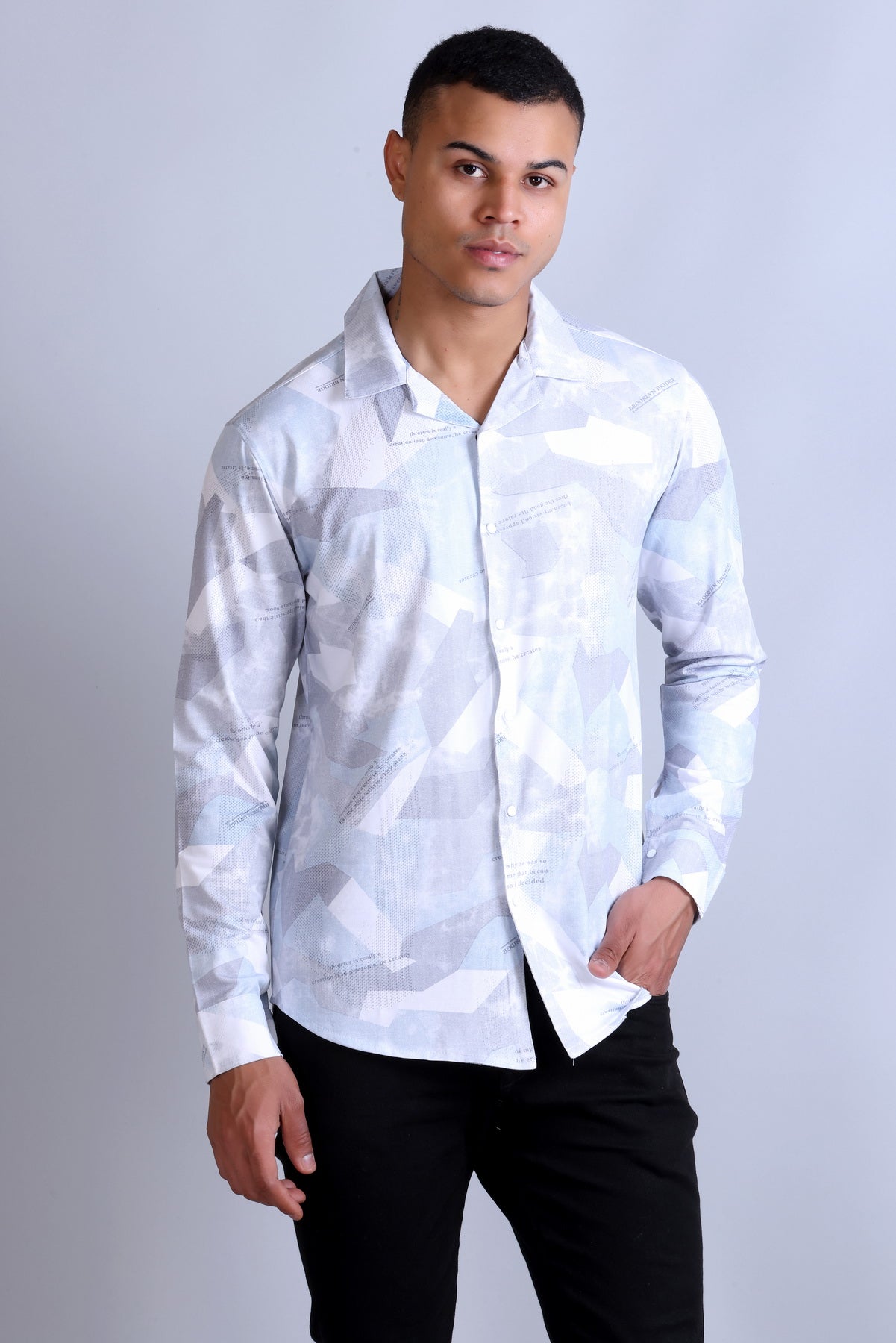 Elevate your everyday style with our Men's Sky White Printed Shirt This timeless and versatile wardrobe essential combines a classic round neck design with a solid color, making it the perfect choice for a clean and stylish look in any season.