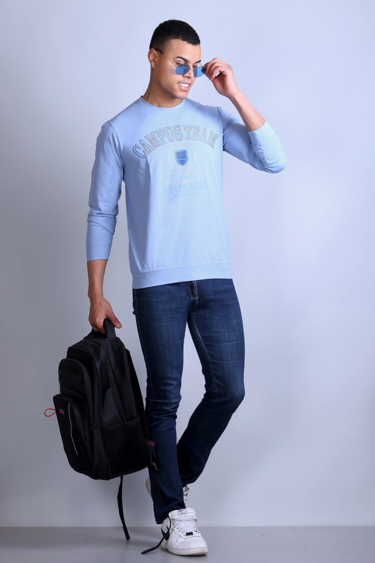 Elevate your everyday style with our Men's Round Neck Printed Sweatshirt. This timeless and versatile wardrobe essential combines a classic round neck design with a solid color, making it the perfect choice for a clean and stylish look in any season.