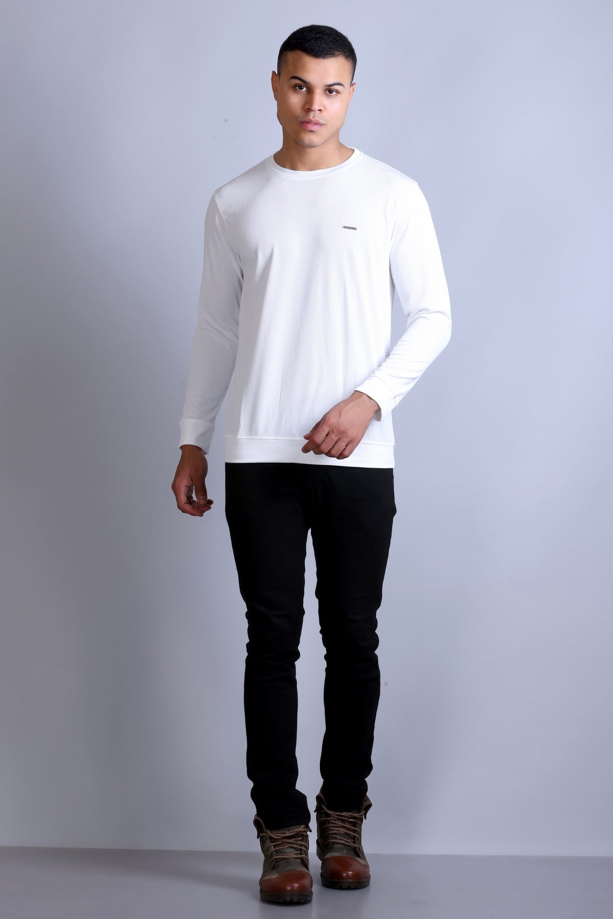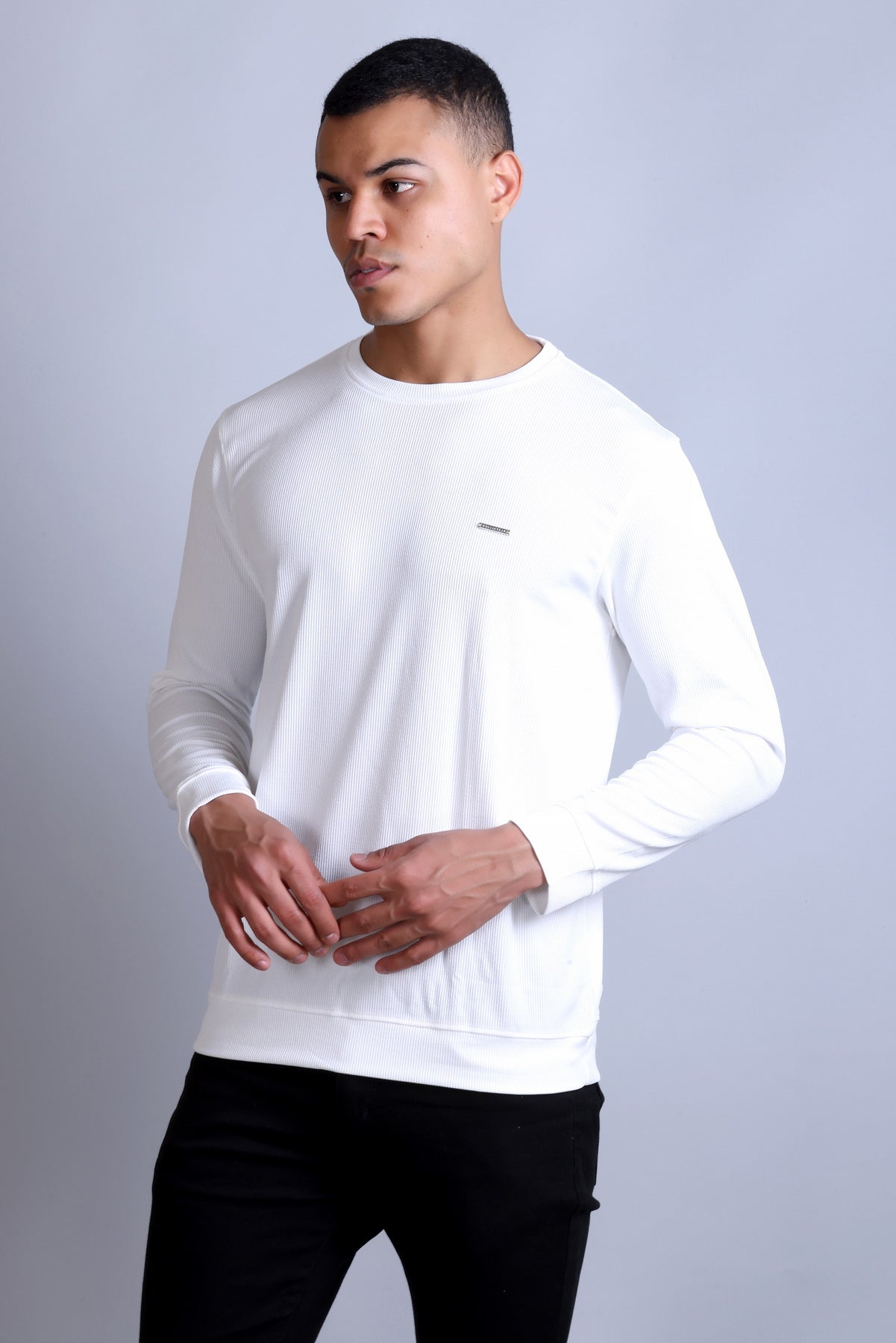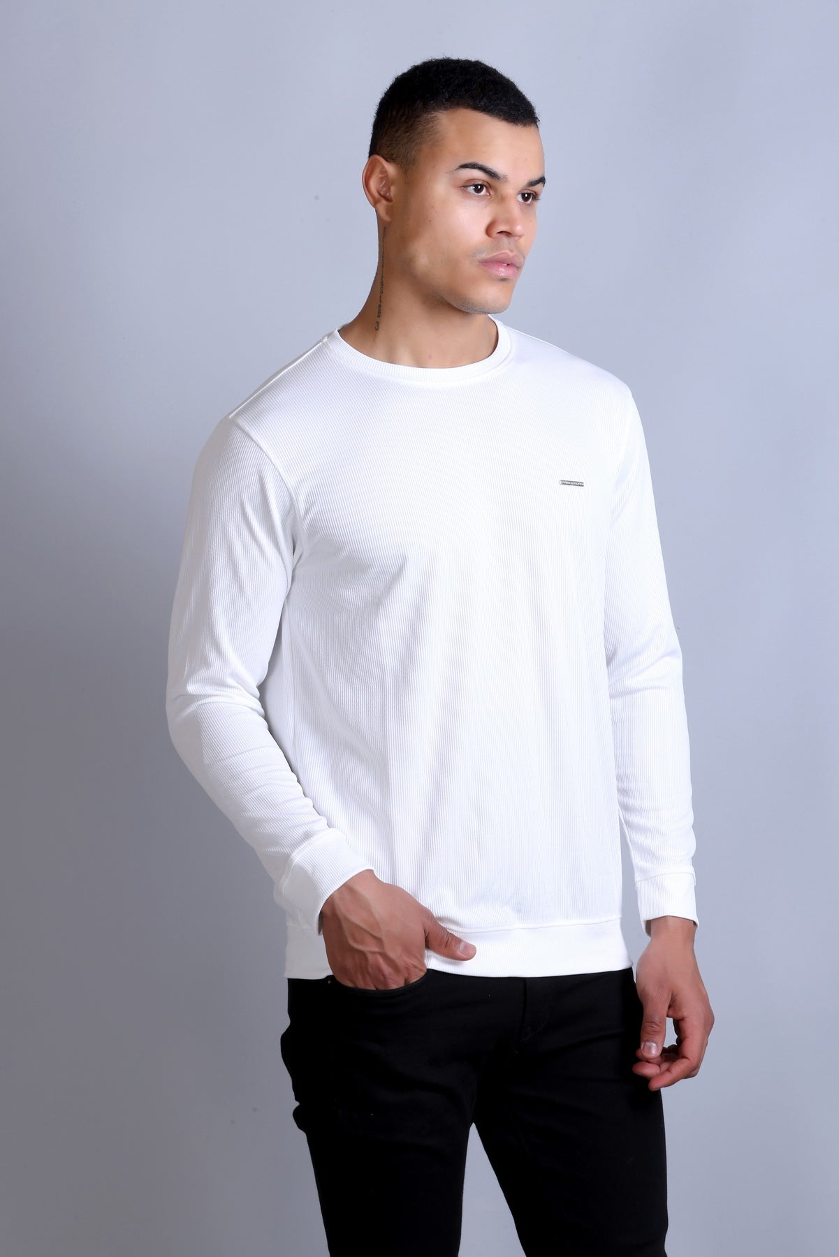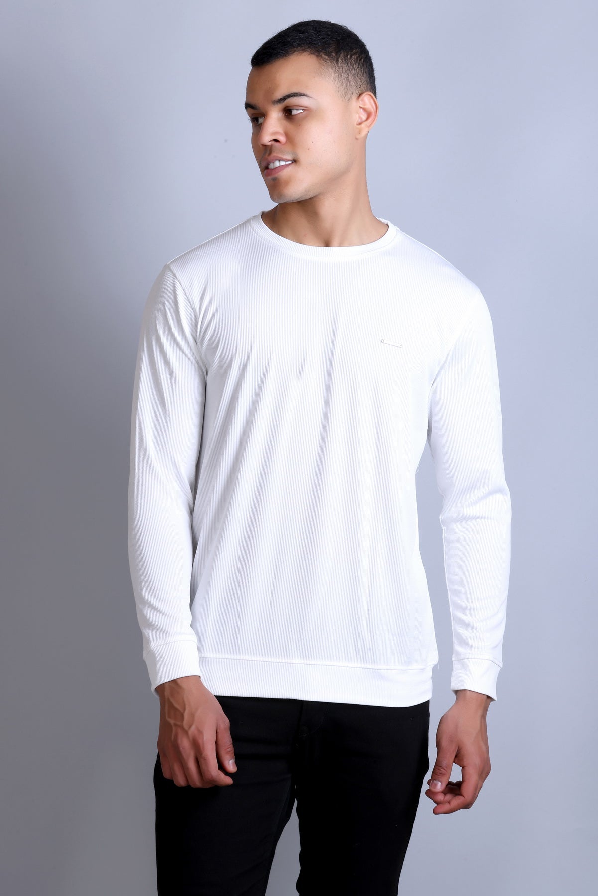 Men's White Solid Round Neck Sweatshirt